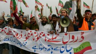 Имронхон, раҳбари Ҳизби Таҳрики Инсофи Покистон, ахиран таҳдид карда буд дар сурате, ки Омрико ҳамалоти ҳавопаймоҳои бидуни сарнишини худро мутаваққиф накунад, дар Хайбари Пахтунхо тазоҳуроте умумиро бо ҳадафи таваққуфи масири тадорукотии НОТУ барпо хоҳад кард.