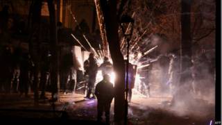 Image copyrightAFPДар Киев, пойтахти Укроён хушунатҳои бештаре рух дода ва пулис барои пароканда кардани муътаризоне, ки дар маркази шаҳр сангар гирифтаанд, ба зӯр мутавассил шудааст.