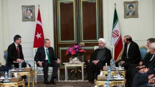 Субҳи рӯзи чаҳоршанбеи 29 январ Раҷаб Тайиб Эрдуғон, нахуствазири Туркия, ки шомгоҳи гузашта барои дидоре дурӯза вориди Теҳрон шудааст, бо Ҳасани Рӯҳонӣ, раиси ҷумҳурии Эрон дар муҷтамаъи Кохи Саъдобод дидору гуфтугӯ кард.