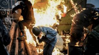 Image copyrightAFPОташбаси дурӯза миёни мухолифон ва давлати Укройн чанд соъат бештар давом наовард ва пулису муътаризон дубора дар Киев, пойтахти ин кишвар, даргир шудаанд.
