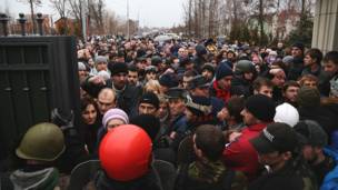 Ҳазорон укройнӣ роҳ ба суи манзили муҷаллали хориҷ аз шаҳри президент Янукович гирифтаанд, ки пас аз фарори ӯ аз шаҳри Киев комилан ҳифз шудааст.