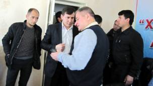 Гурӯҳе аз мардон ба дафтари Ҳизби сусиёл-демукроти Тоҷикистон юриш бурда ва хостори қатъи маҳфили ин ҳизб барои таҷлил аз фарорасии баҳор ва солгарди Акашариф Ҷӯраев, овозхони маъруф, шуданд.