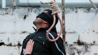 Ин гузориши тасвирӣ, ки рӯзи сешанбеи 15 апрел дар хабаргузории донишҷӯёни Эрон, ИСНО, мунташир шуда, маросими эъдоме дар шаҳристони Нур, дар шимоли Эронро нишон медиҳад, ки тайи он қарор аст ҷавоне ба номи Балол ба иллати қатли ҷавоне дигар ба номи Абдуллоҳ Ҳусейнзода болои чӯбаи дор бурда шавад.