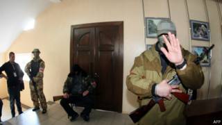 Image copyrightAFPГурӯҳҳои мусаллаҳи тарафдори Русия аз қабули иҷрои тавофуқи Женев барои тахлияи марокизи давлатии Укройн худдорӣ мекунанд.