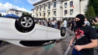 Image copyrightAFPРусия ба ҳамлаи гурӯҳе аз тазоҳуркунандагони хашмгин ба сафорати ин кишвар дар Киев, пойтахти Укройн, башиддат вокуниш нишон додааст.
