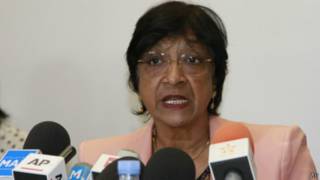 Image copyrightAPНовӣ Пилой, кумиссари олии ҳуқуқи башари Созмони Милали Муттаҳид мегӯяд сарнагунии "ваҳшатноки" ҳавопаймои мусофирии молезиёӣ дар шарқи Укройн метавонад ҷинояти ҷангӣ талаққӣ шавад ва бояд дар бораи он таҳқиқоти "ҷомеъ, муассир, мустақил ва бетарафонае" анҷом шавад.