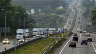 Image copyrightReutersДар ҳоле ки корвони кумакҳои башардӯстонаи Русия ба марзи Укройн наздик мешавад , мақомоти укройнӣ таъкид кардаанд, ки ба ин корвон иҷозаи вуруд ба кишварашонро нахоҳанд дод.