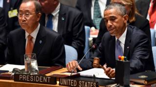 Image copyrightAFPШӯрои Амнияти Созмони Милал дар ҷаласаи вижае бо ҳузури раҳбарони чанд кишвар, аз ҷумла Борок Убомо, раиси ҷумҳурии Омрико, қатъномае содир карда, ки пайвастани афрод ба гурӯҳҳои пайкорҷӯ ҷурм талаққӣ мекунад.