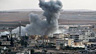 Image copyrightGettyАртиши Омрико бо интишори баёнияе аз ҳамалоти ҳавоии тоза ба мавозеъи шибҳнизомиёни гурӯҳи Давлати Исломӣ (ДОъиш) дар ҳаволии шаҳри курднишини Кубонии Сурия хабар додааст.