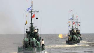 Image copyrightRIA NovostiНерӯҳои дарёии Эрон ва Русия имрӯз дар дарёи (баҳри) Хазар тамрини низомии муштарак баргузор мекунанд.