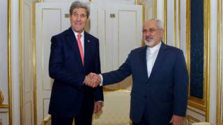 Image copyright U.S. Department of StateБо наздик шудани муҳлати 24 ноябр, вузарои хориҷаи Гурӯҳи панҷ ба иловаи як, ки дар рӯзи якшанбе ҳамчунон ба музокироти фишурда барои расидан ба тавофуқи ҷомеъ бо Эрон идома доданд, дар ҳоли баррасии тамдиди музокирот ҳастанд.