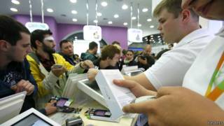 Коҳиши арзиши пули миллии Русия ба хусус дар ҳафтаҳои ахир ва дар натиҷаи он афзоиши баҳои аҷноси воридотӣ боис шудааст, ки харидорони русӣ дар садади хариди колоҳои воридотӣ бароянд, пеш аз он ки баҳои онҳо бештар шавад. Ба ҳамин далел ширкати "Apple"ҳам бо ҳуҷуми муштариёни русӣ барои хариди интернетии маҳсулоти худ мувоҷеҳ буда, дар ҳоле ки итминон вуҷуд надоштааст, ки арзиши рубли дарёфтӣ дар баробари арзҳои муътабари хориҷӣ чӣ хоҳад буд.