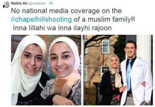 Дар ин шабакаҳо аз пӯшиши расонаии ин хабар дар сатҳи ҷаҳонӣ интиқод шуда ва мунтақидон гуфтаанд, ки расонаҳои байналмилалӣ аҳамияти кофӣ ба қатли ин се донишҷӯи мусалмон надодаанд.