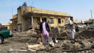 Image copyrightEPAДар вилояти Ҳилманд дар ҷануби Афғонистон як бумбгузори интиҳорӣ худрави мамлу аз маводи интиҳории худро дар маркази шаҳри Лашкаргоҳ мунфаҷир кардааст.