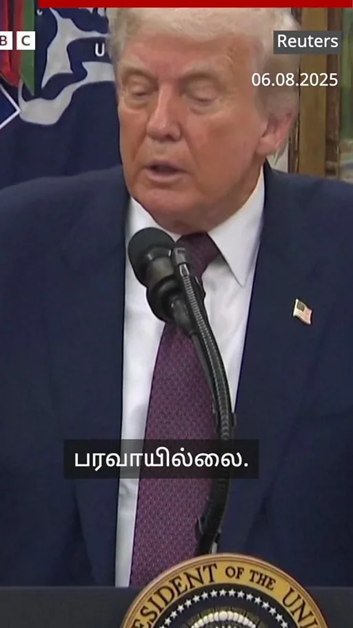 இதற்கு பதிலளித்த டிரம்ப், "8 மணி நேரம் தான் கடந்துள்ளது. அடுத்து என்ன நடக்கிறது என்று பார்ப்போம்." என்றார். ஆனால் இந்தியா மீது மட்டும் ஏன் கூடுதல் வரிகளை விதிக்கிறீர்கள்? என மீண்டும் அந்த நிருபர் கேள்வி எழுப்பினார்.