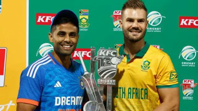 இந்திய அணி ஜெய்ஸ்வால் அருமையான தொடக்கத்தை அளித்து ரன்களை வெளுத்து வாங்கினார். இதைப் பார்த்த கேப்டன் மார்க்ரம், 3வது ஓவரிலேயே கேசவ் மகராஜை பந்துவீச அழைத்தார். அதற்கு ஏற்றார்போல், மகராஜ் பந்துவீச வந்தஉடன் சுப்மான் கில் விக்கெட்டை வீழ்த்திக் கொடுத்தார். சுப்மான் கில் ஸ்வீப் ஷாட் அடிக்க முற்பட்டபோது கால்காப்பில் வாங்கினார், டி ரீப்ளேயில் பந்து லெக்சைடு சென்றது தெரிந்தாலும் கில்லுக்கு அவுட் வழங்கப்பட்டது. அடுத்து வந்த திலக் வர்மா வந்தவேகத்தில் விக்கெட்டை இழந்தார்.