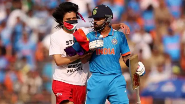கோலியை நெருங்கிய இளைஞர் யார்? பாலத்தீன ஆதரவு வாசகங்களுடன் வந்த அவர் எந்த நாட்டவர்?
