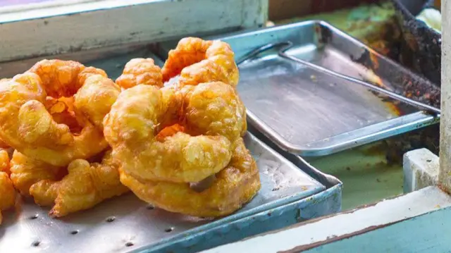 "இஸ்ஃபெங் ஒரு பெரிய அளவிலான டோனட் ஆகும். இதன் மேல் மற்றும் கீழ் பகுதி முழுவதும் குமிழ்களைக் கொண்டு இருக்கும். இது வெளிப்புறத்தில் மொறுமொறுப்பாகவும் உள்ளே மிருதுவாகவும் இருக்கும்," என டாக்டர் எலனா கூறுகிறார்.