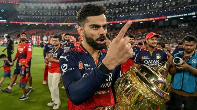இன்று கிங் கோலி என்கிற மகுடம் உங்களுக்கு நன்றாகப் பொருந்தியுள்ளது. அடுத்த சீசனில் சென்னை அணியிடம் வலுவான கம்பேக்கை எதிர்பார்க்கிறேன்" எனத் தெரிவித்துள்ளார்.