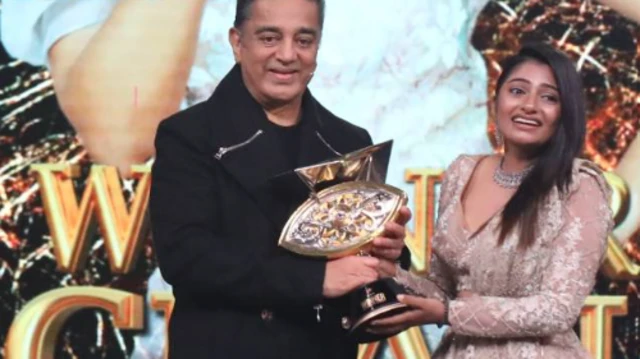 வெற்றியாளருக்கான கோப்பையை நிகழ்ச்சியின் தொகுப்பாளரும் நடிகருமான கமல்ஹாசன் வழங்கினார். ’வைல்ட் கார்ட்’ என்ட்ரியில் உள்ளே வந்த போட்டியாளர் ஒருவர் தமிழ் பிக் பாஸ் சீசனில் கோப்பையை வெல்வது இதுவே முதன்முறை.