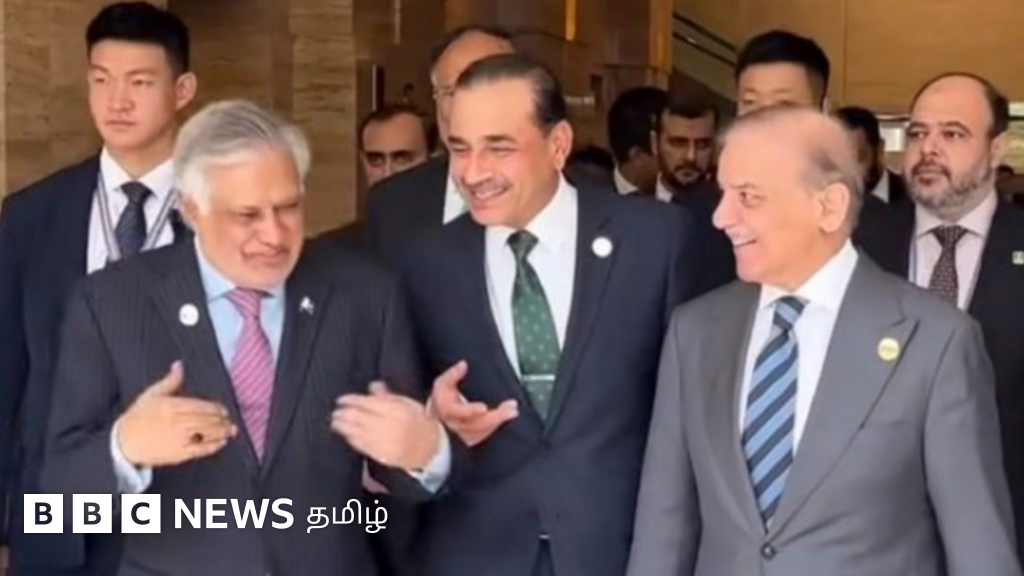படக்குறிப்பு, இரானுடனான போர்நிறுத்தத்தில் பாகிஸ்தானின் பங்கு குறித்து டிரம்ப் பேசியுள்ளார் (கோப்புப் படம்: இடமிருந்து இஷாக் தார், ஆசிம் முனீர் மற்றும் ஷாபாஸ் ஷெரீப்)