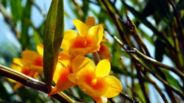 டென்ட்ரோபியம் ஆர்க்கிட் அல்லது கோல்டன் கிராஸ் ஆர்க்கிட் எனப்படும் இந்தப் பூக்கள், 10 முதல் 20 பச்சை மூங்கில்களுக்கு இடையே வளர்கிறது. ஆரஞ்சு நிறத்தில் வெல்வெட் போன்ற மிருதுவான நடுப்பகுதியைக் கொண்ட அழகான, ஆனால் வாசமில்லாத ஒரு மலர். சௌ (Tsou) பழங்குடி மக்களைப் பொறுத்தவரை இவை கடவுளின் பூக்கள்.