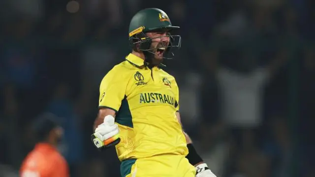 ஆனால், மேக்ஸ்வெல் களமிறங்கியபின் ஆட்டத்தின் போக்கு மாறியது. உலகக் கோப்பையில் அதிவேகமாக சதம் அடித்த பெருமையை மேக்ஸ்வெல் பெற்றார். இதற்கு முன் மார்க்ரம் 49 பந்துகளில் சதம் அடித்ததே குறைந்த பந்துகளில் சதம் அடித்த சாதனையாக இருந்தது, அதை மேக்ஸ்வெல் முறியடித்தார்.