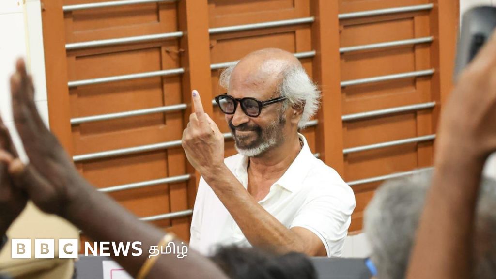 படக்குறிப்பு, நடிகர் ரஜினிகாந்த் சென்னை ஸ்டெல்லா மேரீஸ் கல்லூரியில் வாக்களித்தார்.