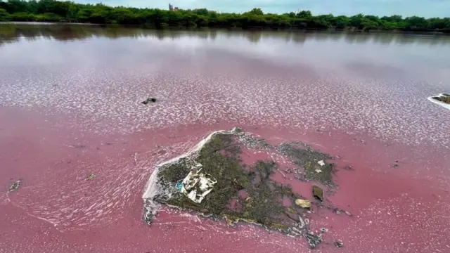 தெலங்கானாவில் முழு ஏரியும் சிவப்பாக மாற என்ன காரணம்? பிபிசி கள ஆய்வு