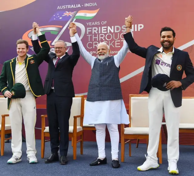 முன்னதாக இந்திய பிரதமர் நரேந்திர மோதி - ஆஸ்திரேலிய பிரதமர் ஆன்டனி அல்பனீஸ் ஆகிய இருவரும் பார்டர் - கவாஸ்கர் டெஸ்ட் தொடரின் 4வது போட்டியை காணச் சென்றனர்.
