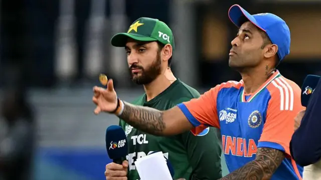 இந்தியா - பாகிஸ்தான் அணிகளுக்கு இடையிலான இறுக்கம் டாஸ் போடும் போதே வெளிப்பட்டது. பாகிஸ்தான் டாஸ் வென்ற போது அந்த அணியின் கேப்டன் அகாவை வாழ்த்துவதற்கு சூர்யகுமார் கை குலுக்கவில்லை.