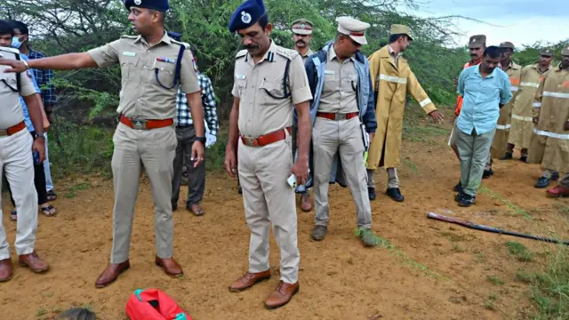 சனமங்கலம் காட்டுப்பகுதியில் துப்பாக்கிச் சூடு நடந்த இடத்தில் போலீசார் ஆய்வு செய்த போது அங்கே நாட்டுத் துப்பாகி, நாட்டு வெடி குண்டு, பெட்ரோல் குண்டுகள் இருந்தது தெரிய வந்தது.