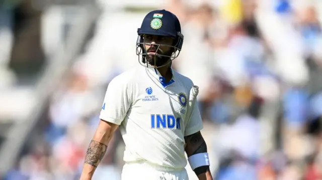 விராட் கோலி 44 ரன்களுடனும், அஜிங்க்யா ரஹானே 20 ரன்களுடனும் களத்தில் ஆட்டமிழக்காமல் உள்ளனர். இருவரும் 4வது விக்கெட்டுக்கு 71 ரன்கள் சேர்த்து களத்தில் உள்ளனர். 444 ரன்கள் இலக்கைத் துரத்திய இந்திய அணி இதுவரை 3 விக்கெட் இழப்புக்கு 164 ரன்கள் சேர்த்துள்ளது, இன்னும் 280 ரன்கள் மட்டுமே வெற்றிக்குத் தேவைப்படுகிறது.
