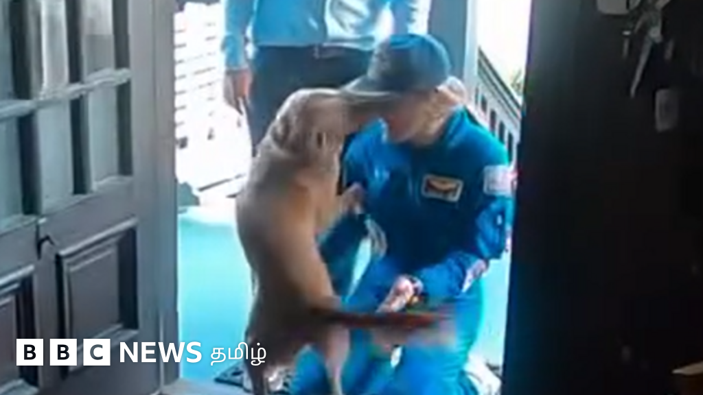 ஆர்டெமிஸ் II நிலவு பயணத்தை முடித்து திரும்பிய விண்வெளி வீராங்கனை கிறிஸ்டினா கோக்-ஐ பார்த்த அவரது நாய் துள்ளிக் குதித்து வரவேற்றது.