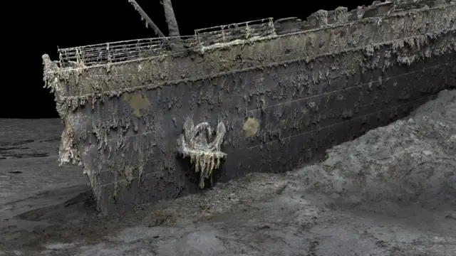 ஆனால் தற்போது ஆழ்கடல் வரைகலை தொழில்நுட்பம் மூலம் காட்சிப்படுத்தப்பட்டுள்ள படங்கள், டைட்டானிக் கப்பலை முழுமையாக காட்டியுள்ளன. அது இரண்டு பிரிவுகளாக உடைந்து கிடக்கிறது.