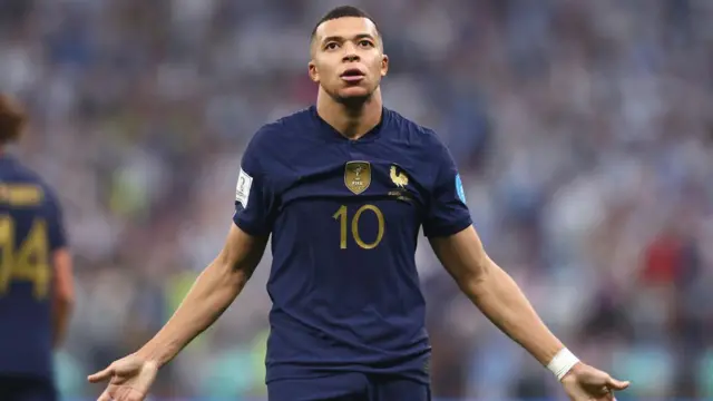 பாரிஸ் செயின்ட் ஜெர்மைன் கிளப்பின் நட்சத்திர வீரரான அவர், மூன்று கோல்களை அடித்து உலகக்கோப்பை இறுதிப்போட்டியில் சாதனை செய்தார்.