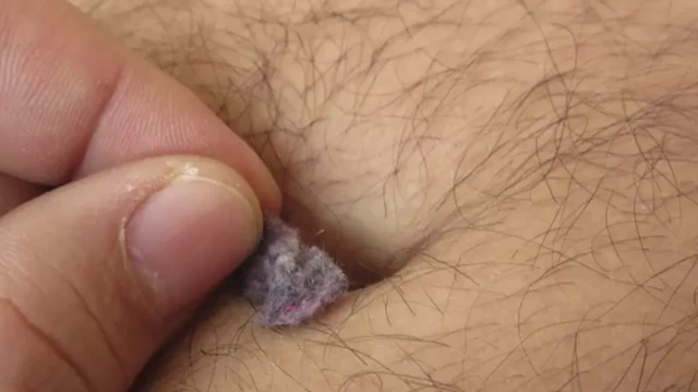 இரண்டாவதாக, வயிற்றில் அதிக முடி உள்ள நடுத்தர வயது ஆண்கள், குறிப்பாக சமீபத்தில் எடை அதிகரித்தவர்களுக்கு தொப்புளில் இந்த கழிவுகள் அதிகமாக இருக்கும்.