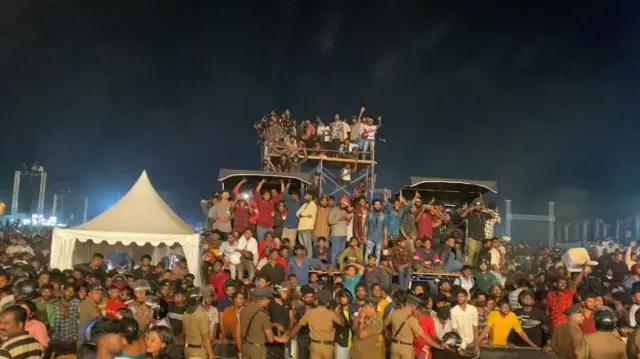 குறித்த மேடையிலிருந்து கீழே இறங்குமாறு கோரிய போதிலும், ரசிகர்கள் அதனையும் பொருட்படுத்தவில்லை என போலீஸார் கூறுகின்றனர்.