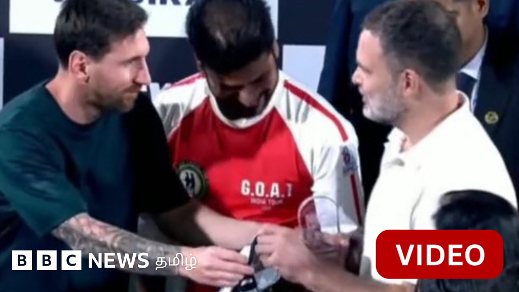 காணொளிக் குறிப்பு, ராகுல் காந்திக்கு ஜெர்சி வழங்கிய மெஸ்ஸி