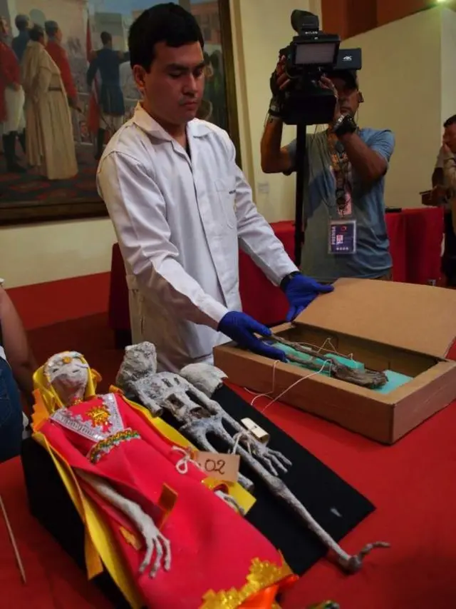 லிமாவில் வெள்ளிக்கிழமை நடைபெற்ற செய்தியாளர் சந்திப்பில், பெருவின் கலாச்சார அமைச்சகம் இந்த மம்மிகள் மனித உருவ பொம்மைகள் என்று கூறியது.