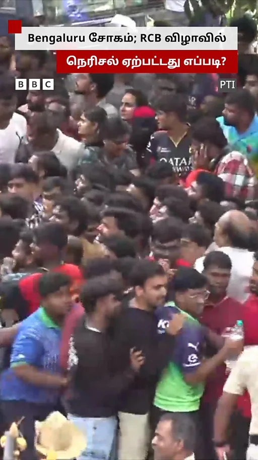 ஐபிஎல் கோப்பையை முதல்முறையாக ராயல் சேலஞ்சர்ஸ் பெங்களூரு அணி வென்றதையடுத்து, பெங்களூரு சின்னசாமி மைதானத்தில் வீரர்களை கௌரவிக்க அரசு சார்பில் விழா ஏற்பாடு செய்யப்பட்டிருந்தது. இதற்காக ஆயிரக்கணக்கான ரசிகர்கள் அங்கு திரண்டிருந்தனர்.