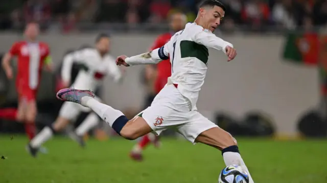 உலகக்கோப்பைக்குப் பிறகு போர்ச்சுகல் அணிக்கு முக்கியத்துவம் வாய்ந்ததாக கருதப்படும் யூரோ 2024 தகுதிச்சுற்றில் அவர் அசத்தி வருகிறார். லிச்டென்ஸ்டெய்ன் அணிக்கு எதிரான முதல் ஆட்டத்தில் 2 கோல்களை அடித்து அசத்திய ரொனல்டோ, லக்சம்பர்க் அணிக்கு எதிரான நேற்றைய ஆட்டத்திலும் தனது சிறப்பான ஆட்டத்தைத் தொடர்ந்தார்.