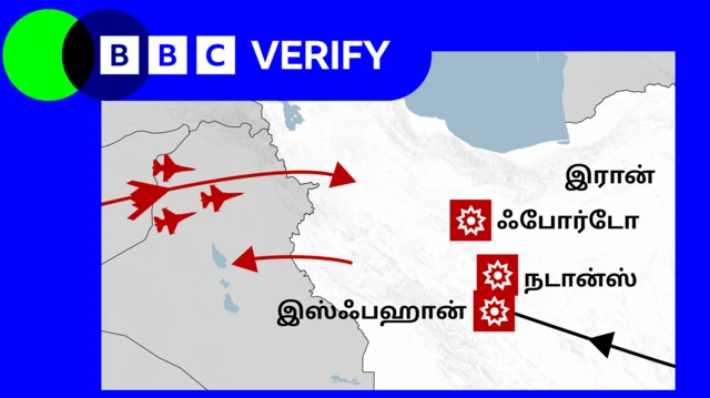 வானிலிருந்து குண்டுகளை வீசும் அமெரிக்க விமானங்கள், "உலகம் அறியாத வண்ணம், இரானுக்குள் நுழைந்து (தாக்கிவிட்டு) திரும்பியதாக," அமெரிக்க பாதுகாப்பு செயலாளர் பீட் ஹெக்சத் செய்தியாளர்களிடம் தெரிவித்தார்.