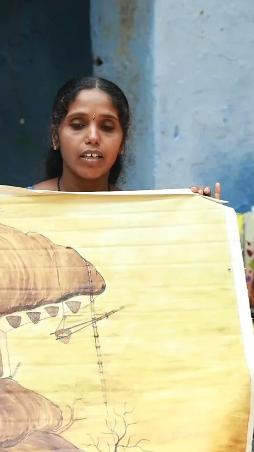''கரிமரத்தின் பட்டையை எடுத்து அரைத்துப் பொடியாக்கி, அதிலிருந்து கருப்பு வண்ணம் எடுப்பார். வேங்கை மரத்திலிருந்து பால் எடுத்து, அதனுடன் வெவ்வேறு இயற்கையான பொருட்களைச் சேர்த்து 7 வண்ணங்களைத் தயார் செய்வார். காட்டுக்குள் வளரும் கிடா (செடி) இலையை அரைத்து அதிலிருந்து பச்சை வண்ணத்தை எடுத்துக் கொள்வார். ஆலமர விழுதிலிருந்துதான் பிரஷ் தயாரிப்பார்.'' என்றார் சுசீலா.