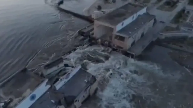 தெற்கு யுக்ரேனில் ரஷ்ய ஆக்கிரமிப்பு பகுதியில் அமைந்திருந்த மிகப்பெரிய அணை தகர்க்கப்பட்டுள்ளதால், அணையில் இருந்து தண்ணீர் வெள்ளமென பெருக்கெடுத்து ஓடிக் கொண்டிருக்கிறது. இந்த நாசகார செயலால் யாருக்கு லாபம் என்ற கேள்வி எழுந்துள்ளது.