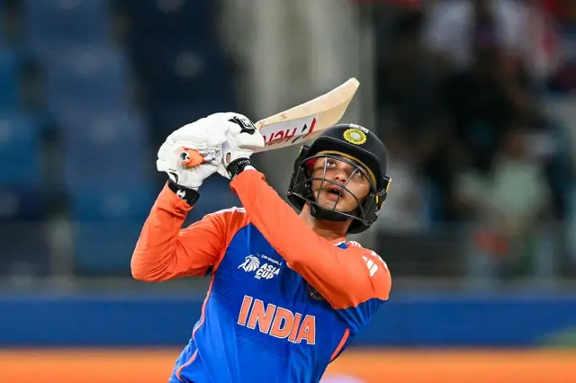 பேட்டிங்கிற்கு சாதகமான பிட்ச்சில், இன்னிங்ஸின் முதல் ஓவரை நுவான் துஷாரா நன்றாக ஸ்விங் செய்து வீசினார். முதல் ஓவரில் 8 ரன்கள் மட்டுமே கிடைத்த நிலையில், தீக்ஷனா வீசிய இரண்டாவது ஓவரில் அபிஷேக் சர்மா தனது அதிரடியை ஆரம்பித்தார். கில் 4 ரன்களில் தீக்ஷனா பந்தில் அவரிடமே கேட்ச் கொடுத்து ஆட்டமிழந்த நிலையில், ஃபார்மில் இல்லாத கேப்டன் சூர்யகுமார் யாதவ் மூன்றாவது விக்கெட்டுக்கு களமிறங்கினார்.