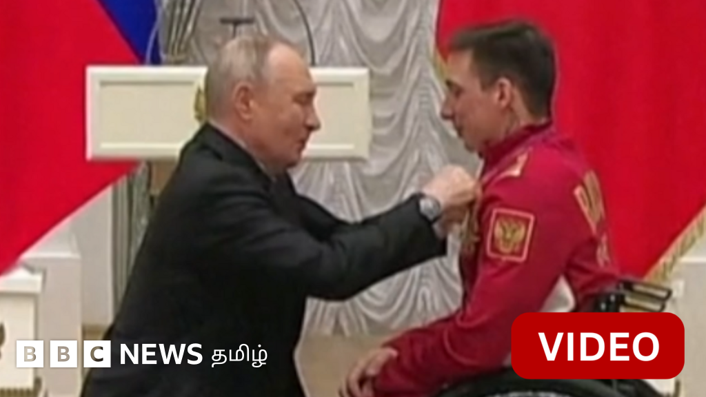 காணொளி: பாராலிம்பிக் வெற்றியாளருக்கு முழங்காலிட்டு பதக்கம் அணிவித்த புதின்