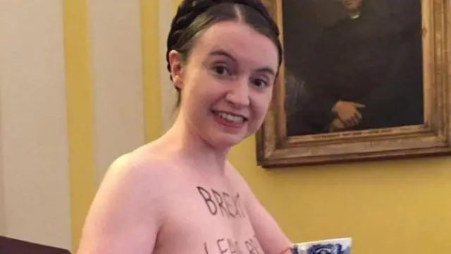 அதேபோல ஐரோப்பிய ஒன்றியத்தைவிட்டு பிரிட்டன் வெளியேற வேண்டும் என்று கூறும் பிரெக்சிட் பிரசாரத்தின்போதும் ஆடையின்றி போராட்டம் நடத்தினார் விக்டோரியா.