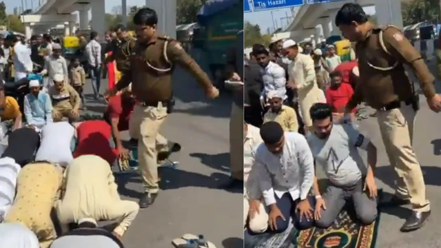 டெல்லியில் சாலையோரம் தொழுகை செய்த இஸ்லாமியர்களை தாக்கிய காவல் உதவி ஆய்வாளர்