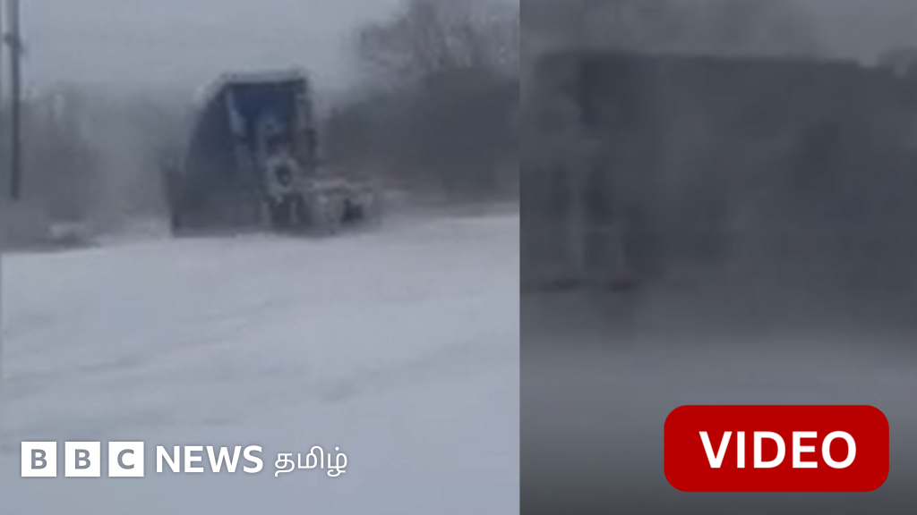 காணொளி: பனிப்புயலில் சிக்கிய டிராக் மீது மோதிய ரயில்